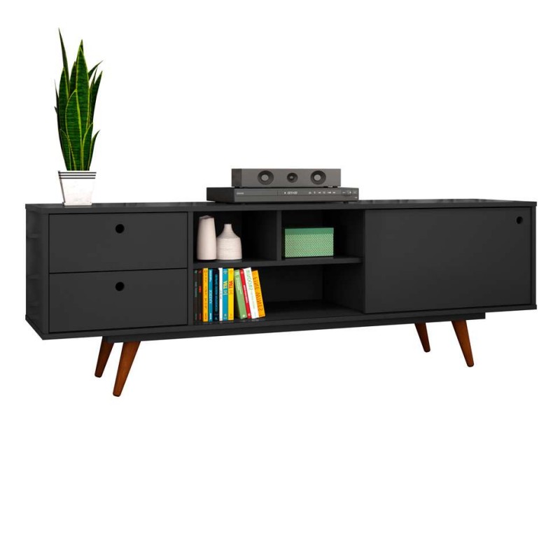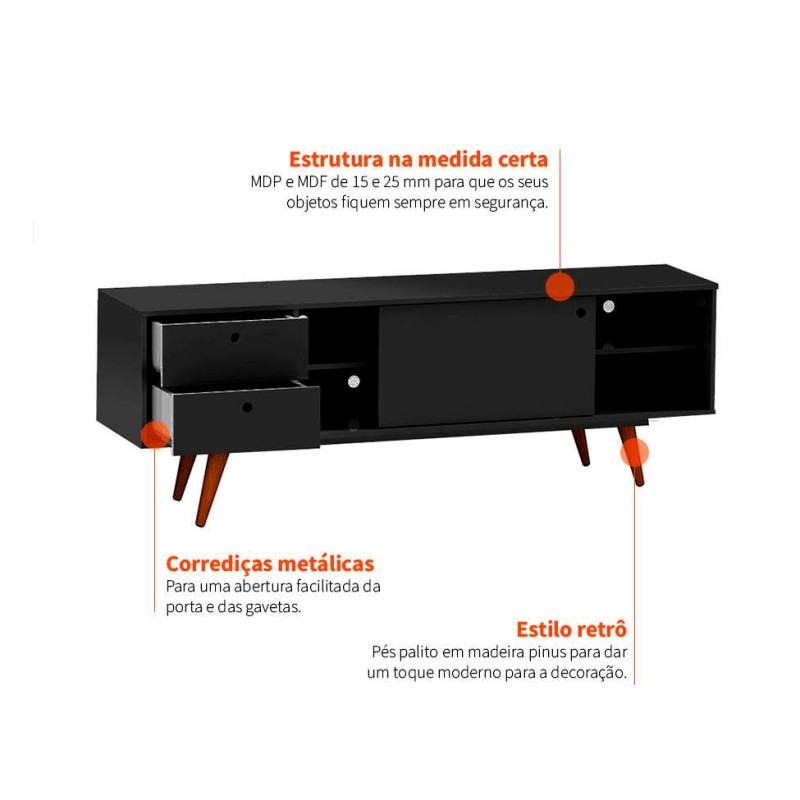 O Rack Retrô é a peça que faltava para deixar tudo arrumadinho do jeito que você gosta aí na sua casa. O modelo moderno é desenvolvido para te proporcionar uma decoração arrojada, além de possuir lugar para televisão, 1 porta, 2 gavetas e divisões com espaços adequados para os mais diversos aparelhos eletrônicos e enfeites.